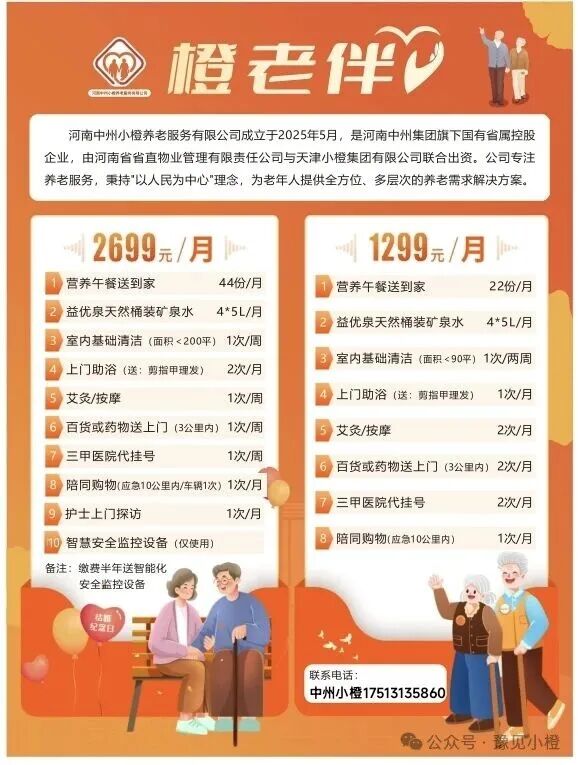 中州小橙创立的“橙老伴”品牌,以创新的服务模式和贴心细致的关怀,为老年人的幸福生活保驾护航。未来,“橙老伴”将不断结合老年人的多方面需求,继续深入探索“物业+养老”的服务模式,优化服务内容,提升服务品质,让更多的老年人享受到便捷、高效、优质的养老服务,真正将“老有所养、老有所依、老有所乐、老有所安”从概念变成现实!