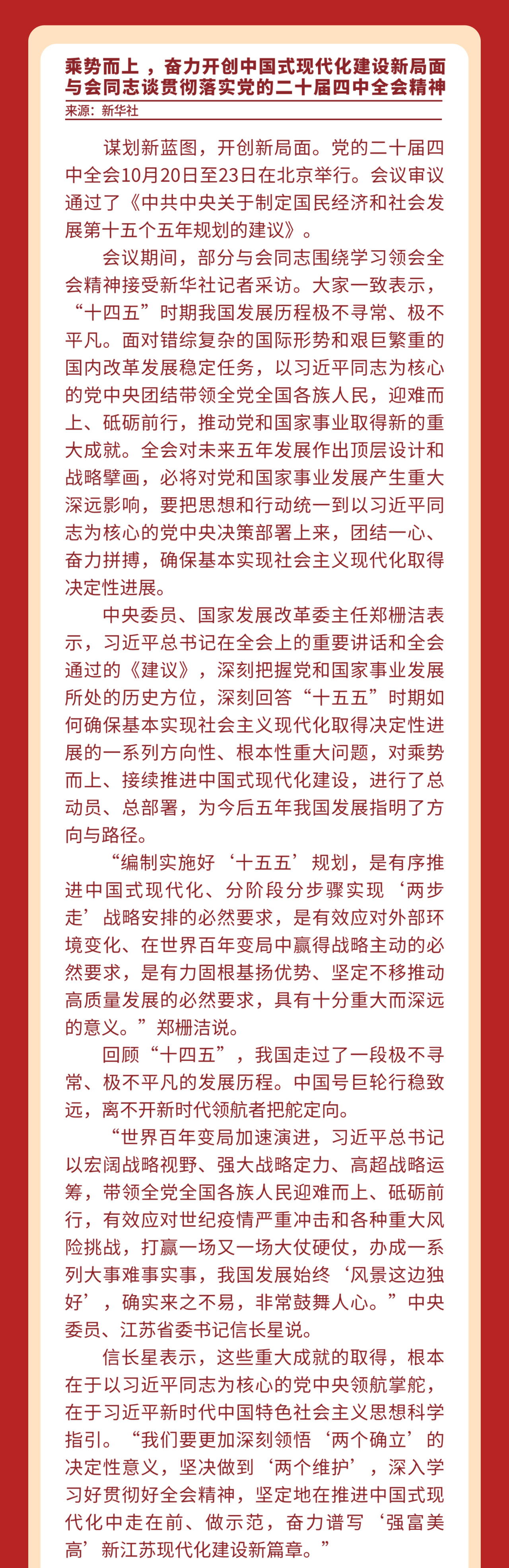 乘势而上,奋力开创中国式现代化建设新局面——与会同志谈贯彻落实党的二十届四中全会精神